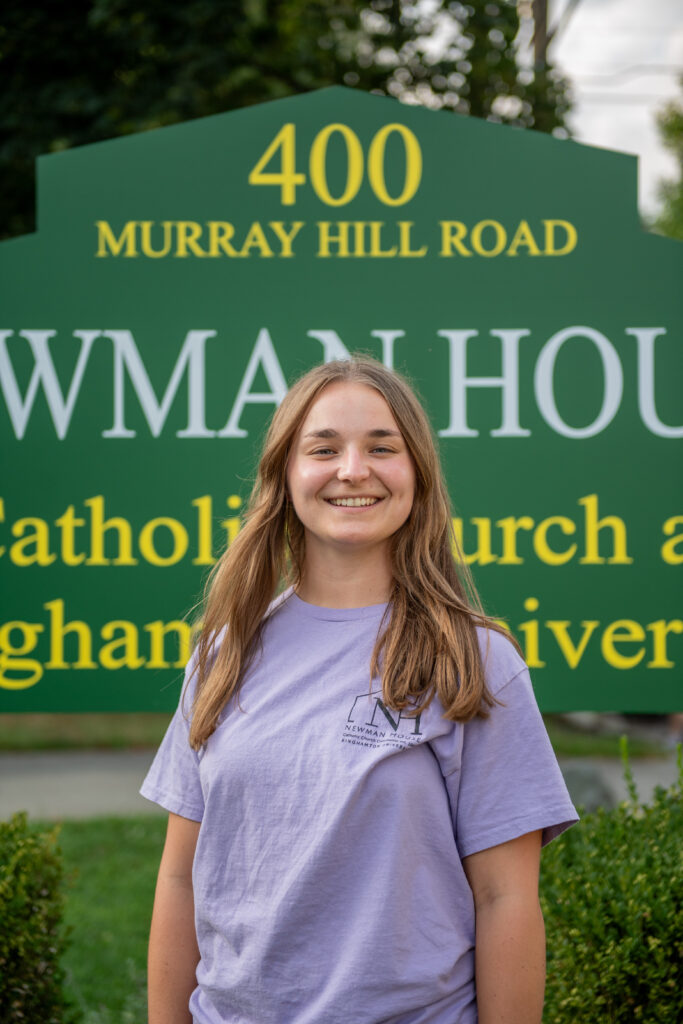 Hi y’all! My name is Anna, and I am a senior at Binghamton studying Nursing. I’m 20 years old, and I grew up in Binghamton. I am this year’s PR chair. In my free time, I ride in EMS. I love to be outside and hike, as well as exercise and play with my dog, Bailey. I am so excited for our Newman House community to keep growing this year and to meet new people!