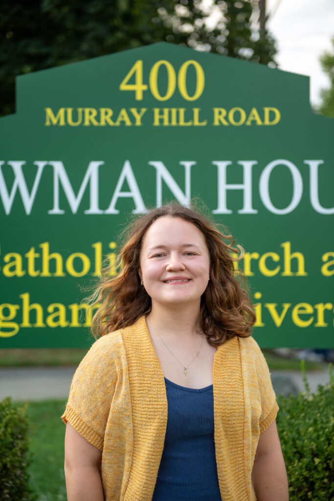Hello! My name is Hailey; I’m 21 years old and I’m a senior at Binghamton studying Environmental Science. I’m from New Windsor, NY, and I am this year’s Music Director. In my free time, I love to dance ballet and sing! I am so excited for new folks joining us at Newman House and going to events together!