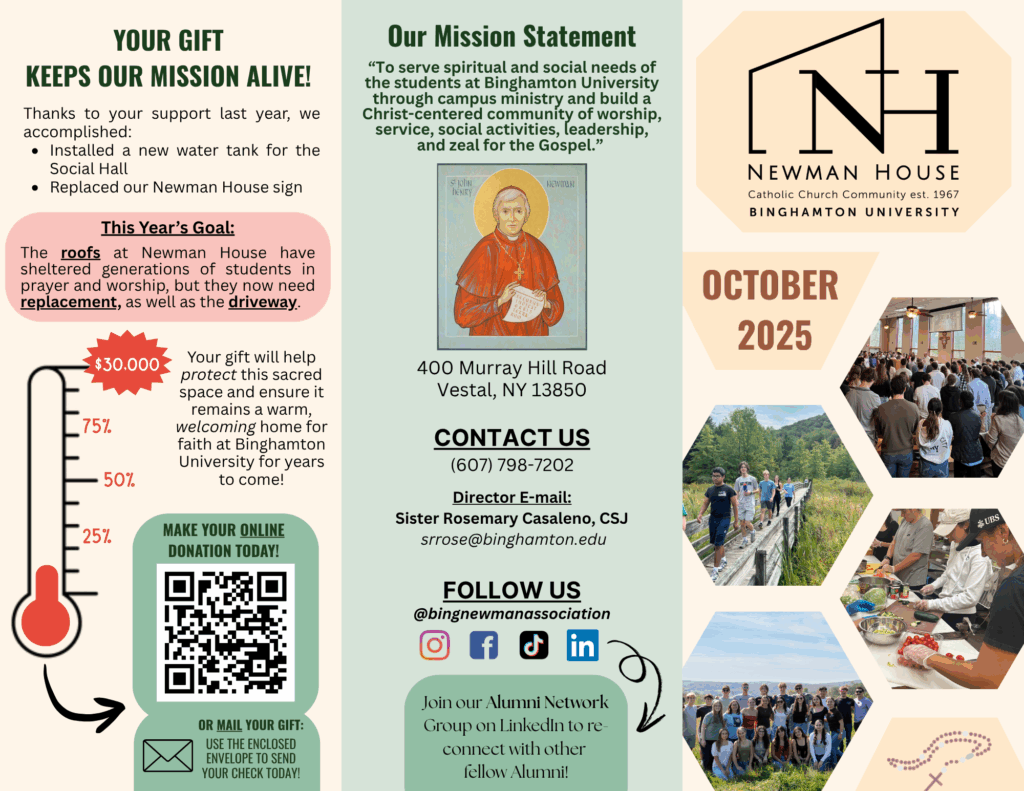 There are also many other ways to support the Newman House other than financial contributions. The Newman House accepts any trade work that could help improve the Catholic community.
